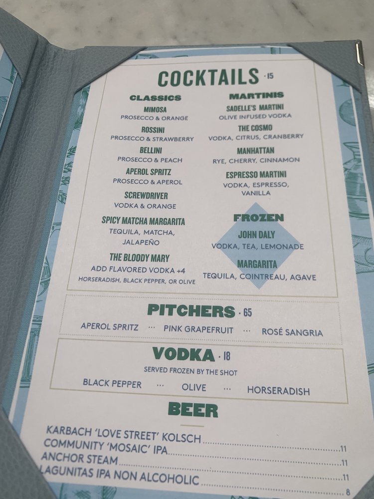 Introducing the menu at Sadelle's, a must-visit spot for brunch enthusiasts in the upscale Highland Park area of Dallas. Known for its vibrant atmosphere and exceptional service, Sadelle's delights patrons with a curated menu that emphasizes burgers, seafood, and breakfast classics.